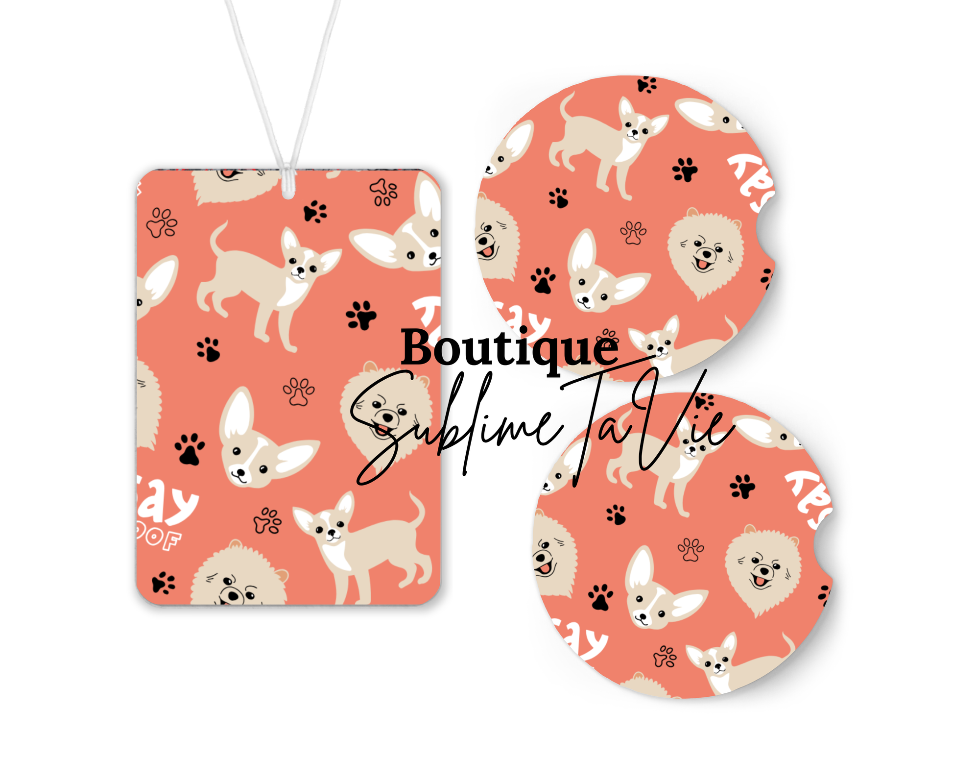 Désodorisant et sous verres de voiture chien