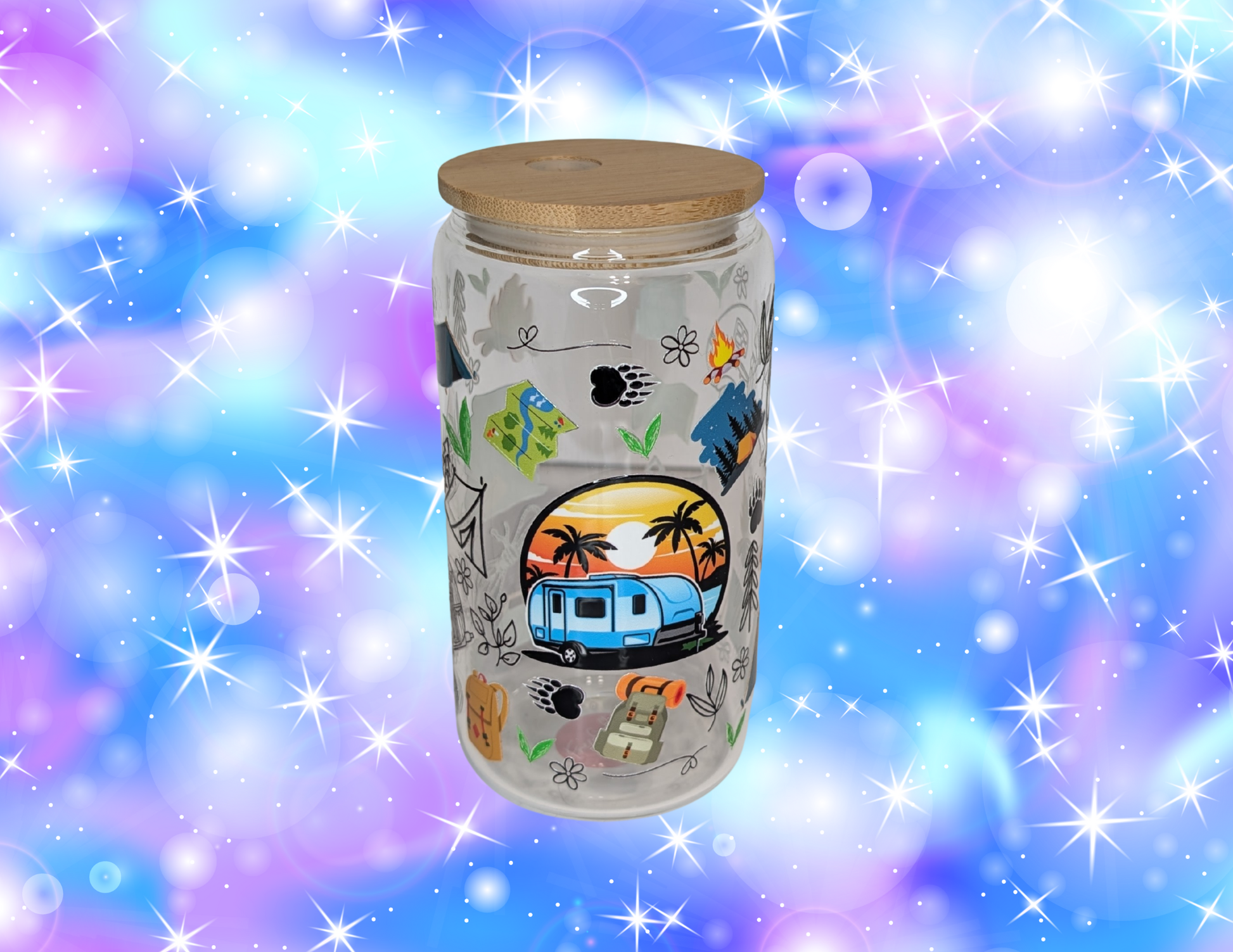 - Couvercle en bambou et paille en verre